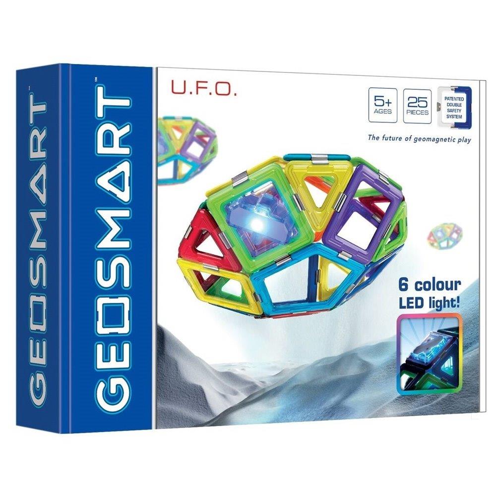 Εξερευνήστε το εξωτερικό χώρο με το δικό σας UFO GeoSmart. Το σετ κατασκευής της εταιρείας GeoSmart περιλαμβάνει πολύχρωμους μαγνήτες και κατοχυρωμένο με δίπλωμα ευρεσιτεχνίας διπλό σύστημα ασφαλείας, εξασφαλίζοντας ασυναγώνιστο επίπεδο ασφάλειας για το παιχνίδι του παιδιού σας. Κάθε κομμάτι περιέχει μαγνήτες που προστατεύονται από διπλό σύστημα ασφαλείας. Τα πολύχρωμα κομμάτια έρχονται σε διάφορα σχήματα και μεγέθη, προσφέροντας στα παιδιά σας αμέτρητους νέους τρόπους να ασκούν τη δημιουργικότητά τους και τη φαντασία τους. Τα παιχνίδια GeoSmart βοηθούν στην ανάπτυξη της δημιουργικότητας, του συντονισμού των χεριών και των ματιών και της λογικής σκέψης των παιδιών σας. Στη συσκευασία περιέχονται 25 τεμάχια.