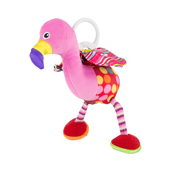 Ένα κρεμαστό ,υφασμάτινο παιχνίδι απο την εταιρεία LAMAZE.Τραβόντας το άσπρο κλιπ του Φλαμίνγκο αρχίζει να φτερουγίζει.Με έντονα χρώματα, διαφορετικές υφές του υφάσματος και ήχους κουδουνίσματος και τσαλακώματος.